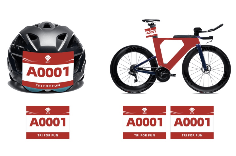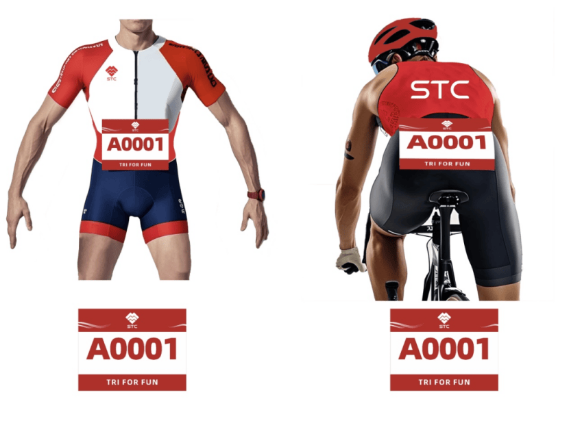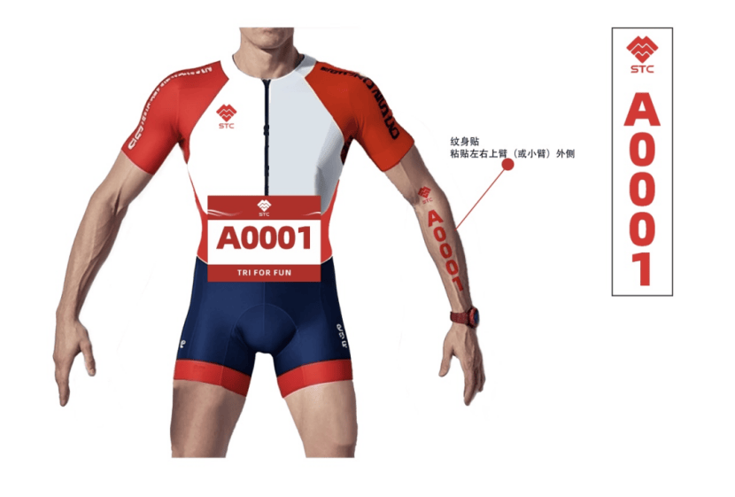 (二)选手须正确佩戴号码簿:自行车阶段位于背后腰部位置,跑步阶段位于前身腰部位置,跑步阶段必须佩戴号码簿。
