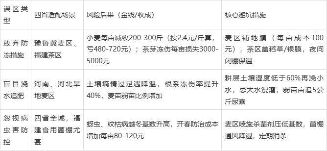 疑问2:暖冬小麦不用防冻? 答:错!晚播小麦(河南周口、山东菏泽占比30%)易因冻融交替死蘖,每亩可能减收300斤,必须做好基础防护。