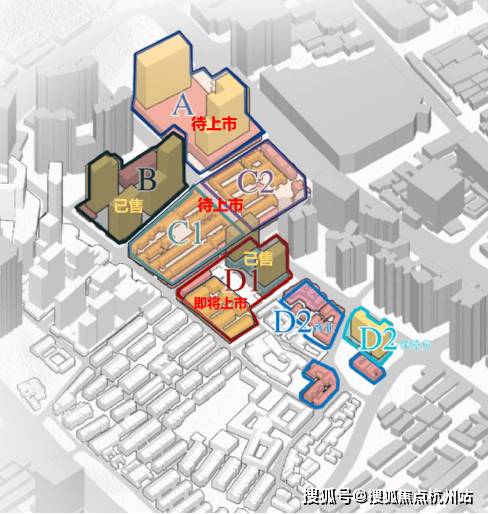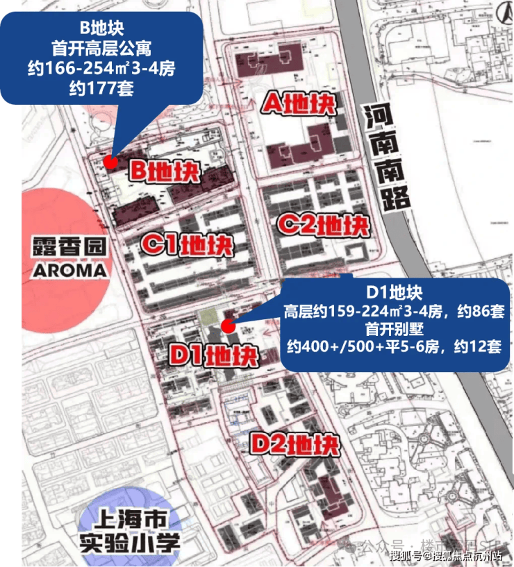 露香园二期可售住宅部分为A、B、C、D四个大地块分别开发建造。首开入市的为B地块和D1地块。