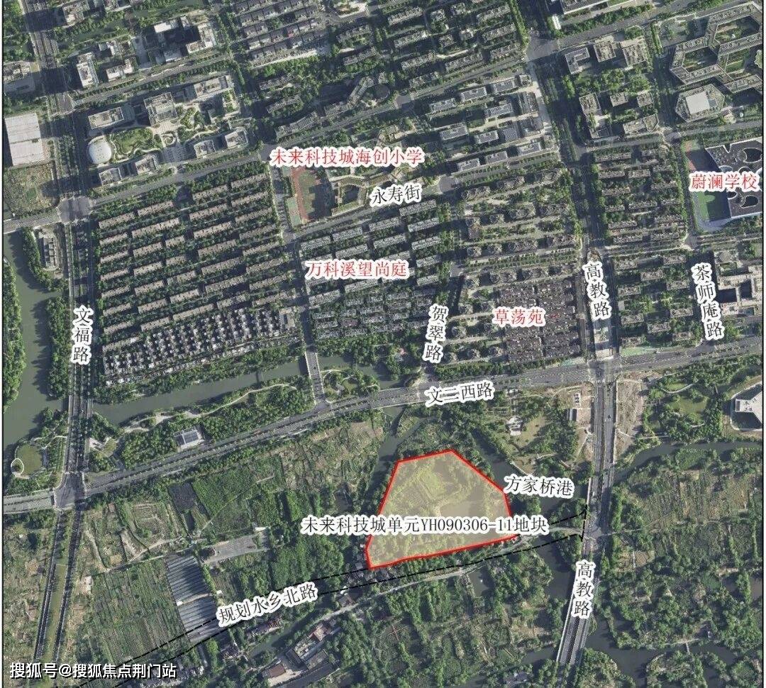 2025年11月25日一早,余杭区文二西路南面,规划水乡北路地铁口、绿城晓月澄庐隔壁,未来科技城低密地块迎来出让!最终,绿城以底价17.985亿元拿下该地块,楼面价3.5万/平!
