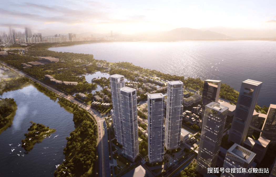 具体来看,项目地理位置得天独厚:西邻京东总部等深超总核心地标,东接蓝楹湾别墅群、欢乐海岸顶级商圈,左手是68.5万㎡华侨城湿地公园的生态绿肺,右手直面深圳湾无遮挡海景,形成“西望城市天际线、东揽高端商圈、北拥生态湿地、南瞰一线海景”的四维景观格局、