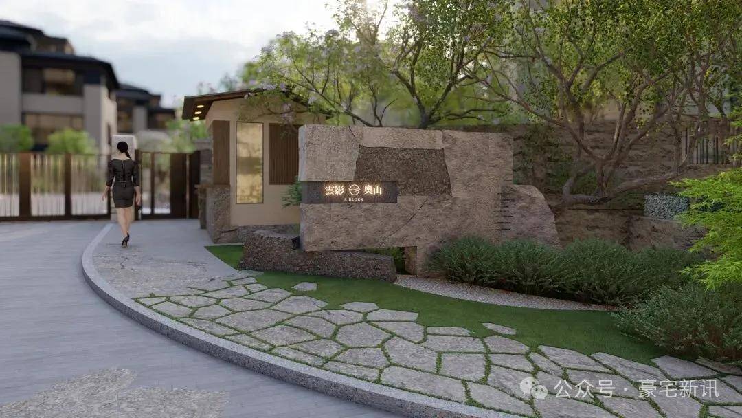 借势白云山,运用「真-行-草」手法将山体灵动秀气的景致引入,融合“石、水、光、林、云”5大自然要素,营造静谧纯粹,高贵又沉稳的归隐生活空间。